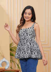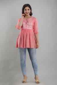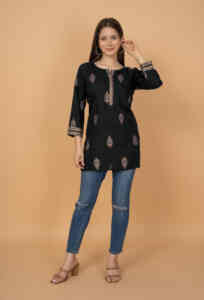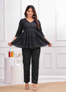 "A stylish and comfortable short kurti set, featuring a coordinated top and bottom for a...