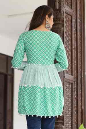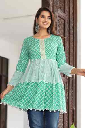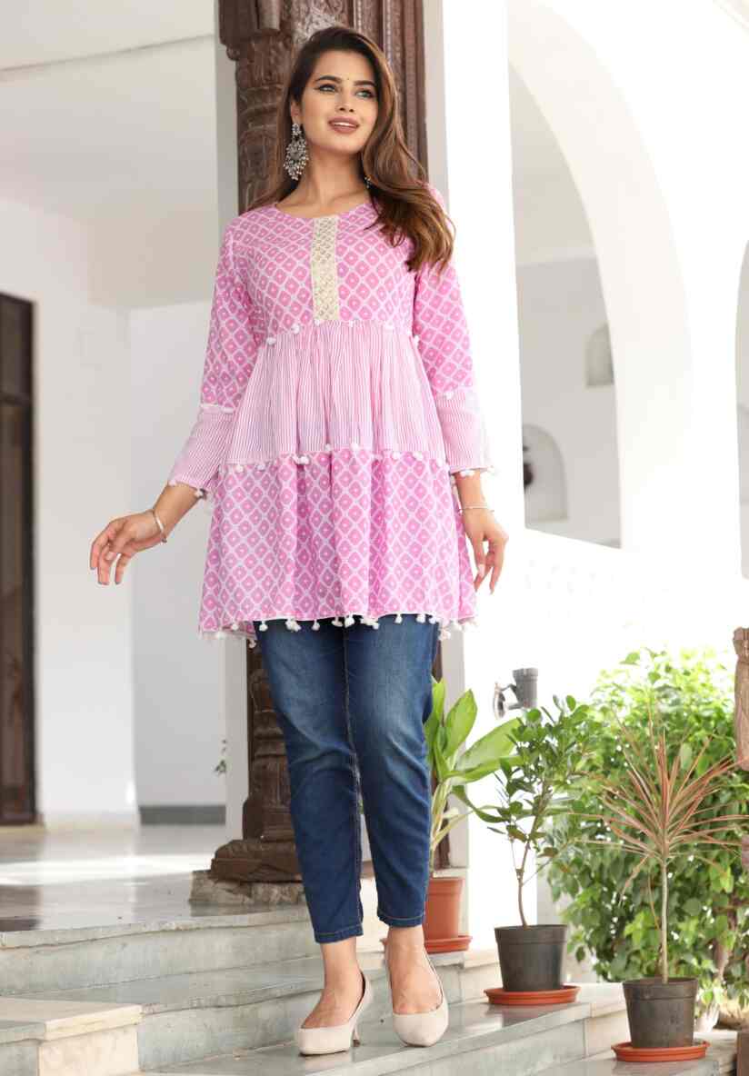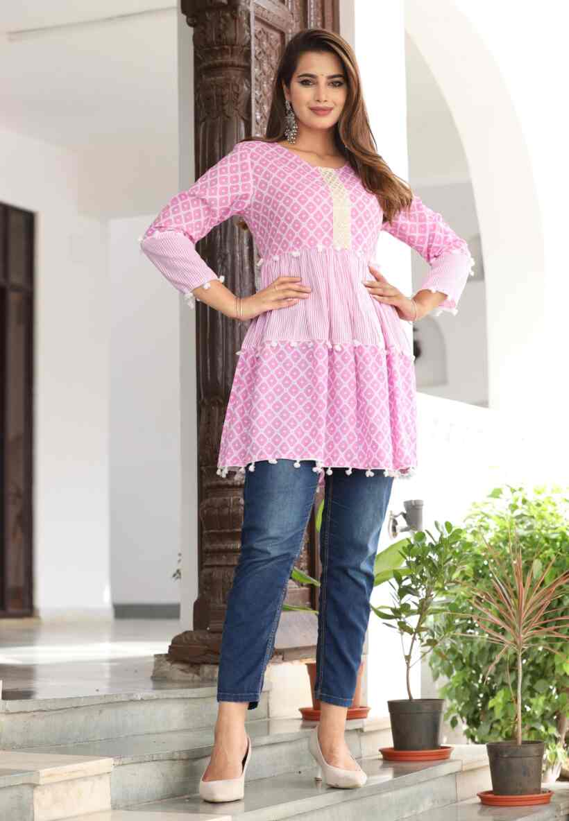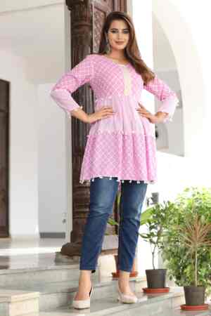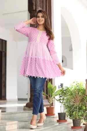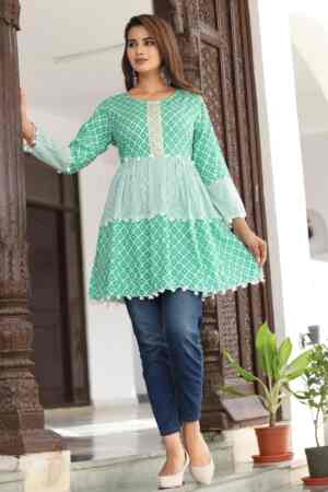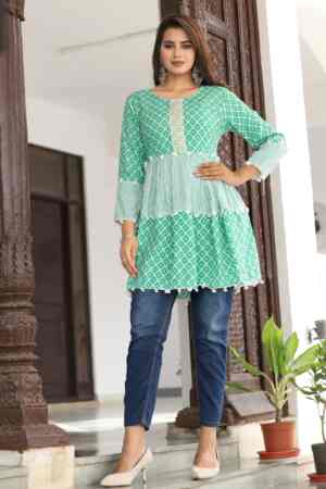 “A comfortable and stylish short kurti, perfect for everyday wear. Made with soft fabric and a simple design, it’s easy to pair with jeans, leggings, or palazzos for a casual, elegant look.”